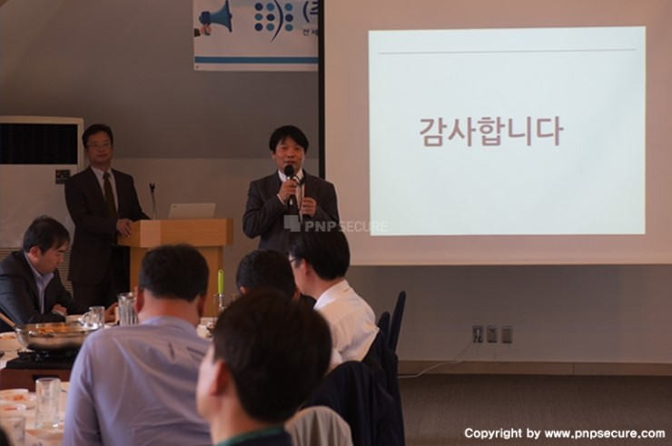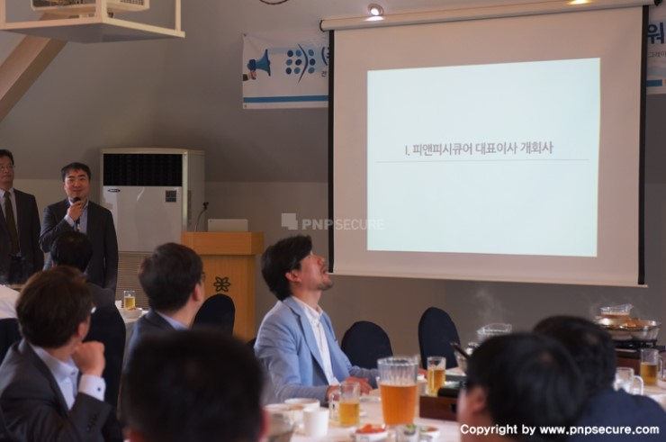 저녁 식사시간에는 박천오 대표이사님과 채널파트너사 관계자들의 사업 발표가 있었고,