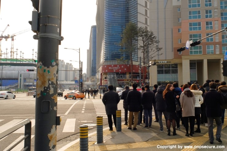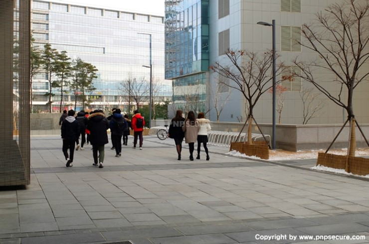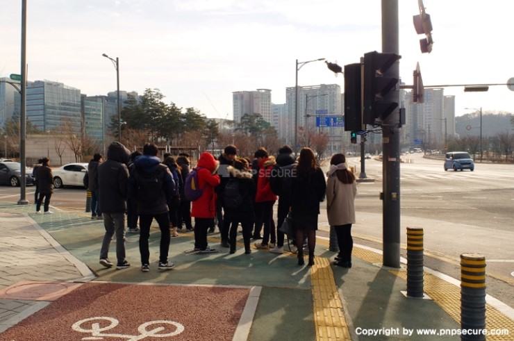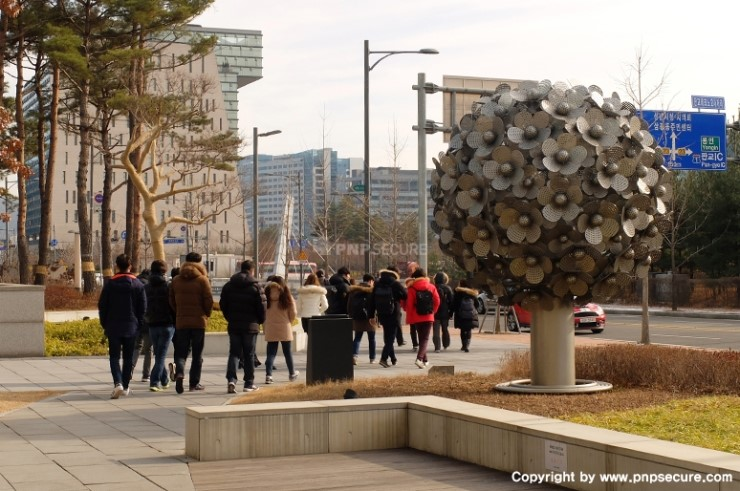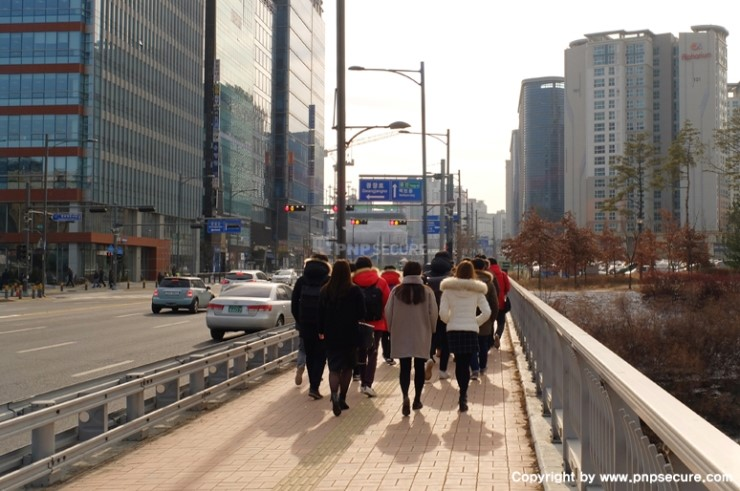 오전 업무를 정리하고 '플레이뮤지엄'을 나서는 (주)피앤피시큐어 임직원...↓