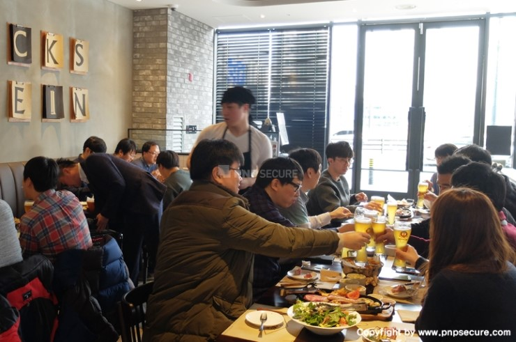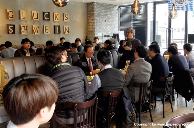 '2016년 종무식'이 진행될 '그릭슈바인'에 도착하여 입장하는 (주)피앤피시큐어 임직원 ...↓