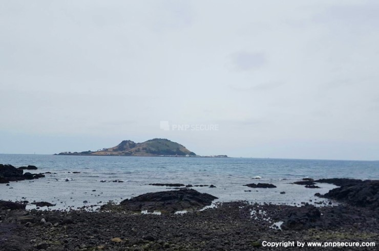 도착하여 촬영한 제주도의 해변과 '2017년 채널파트너사 워크숍'이 진행된 행사장 ↓
