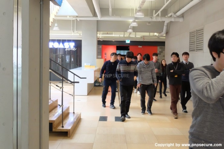 오전 일정이 끝나고 점심을 위해 이동하는 (주)피앤피시큐어 임직원과