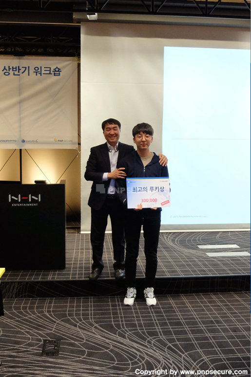 후배 사원을 적극적으로 교육했던 '정보보안기술연구소 / 웹플랫폼팀'의 팀장 '김**' 차장(진급자)이 수상했습니다.