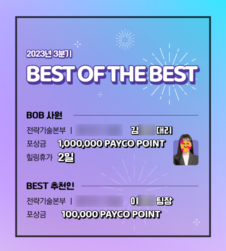 2023년 3/4분기 Best of the Best 사원 - 1백만 포인트와 힐링휴가 2일의 주인공은? [우수사원포상]