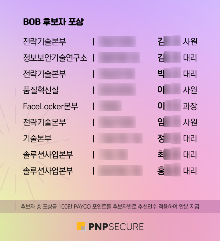 피앤피시큐어 2023년 3/4분기 BOB 사원