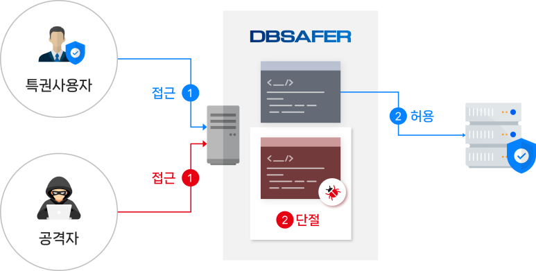 DBSAFER는 공격 시도 차단에 앞서 기업·기관이 서버 내의 잠재적 위협 요소를 사전에 탐색하여 선대응 할 수 있도록 돕습니다.