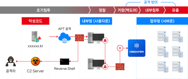 이 글에서는 이러한 한계를 극복하기 위해 DBSAFER 접근 통제 기술을 활용해 APT 공격을 차단하고, 침해 경로를 추적해 감염된 PC·서버를 격리한 뒤 C2 서버(Command & Control) 와의 연결을 차단한 실제 사례를 공유합니다. 이를 통해 DBSAFER가 BPFDoor와 같은 고도화된 해킹 시도를 어떻게 탐지·관리·통제하는지 그 원리와 적용 방안을 살펴보겠습니다.