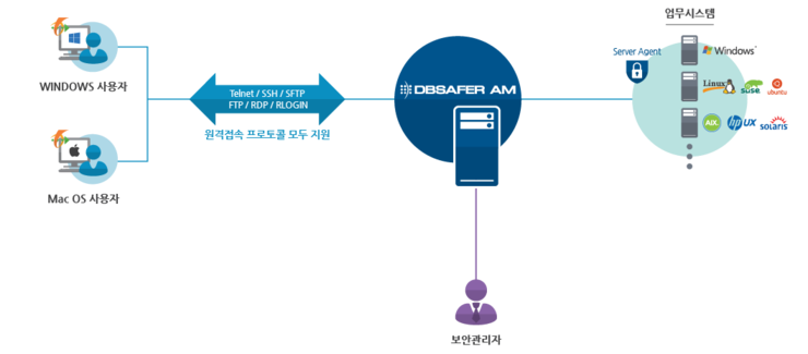 DBSAFER AM은 다음과 같은 구성을 통해 강력한 시스템 접근통제 기능을 수행합니다.