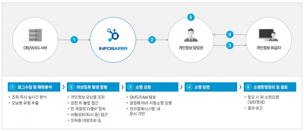 ‘인포세이퍼 V5.0’은 개인정보 취급자의 접속기록을 분석하고 위험 규칙에 따라 이상 행위를 감지한다. 또한 개인정보 오·남용이나 불필요한 다운로드 행위에 대한 소명처리를 통해 컴플라이언스를 만족해 개인정보 책임자의 편리하고 효율적인 점검 활동을 보장한다.