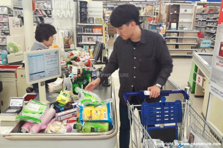 '워크숍(=BBQ 파티)'을 위해 마트에서 '고기(소고기!!) 및 주류(소주, 수입맥주) 그리고 용품'을 구입하는 '기술지원부 / 프로젝트팀'의 맴버들..↓