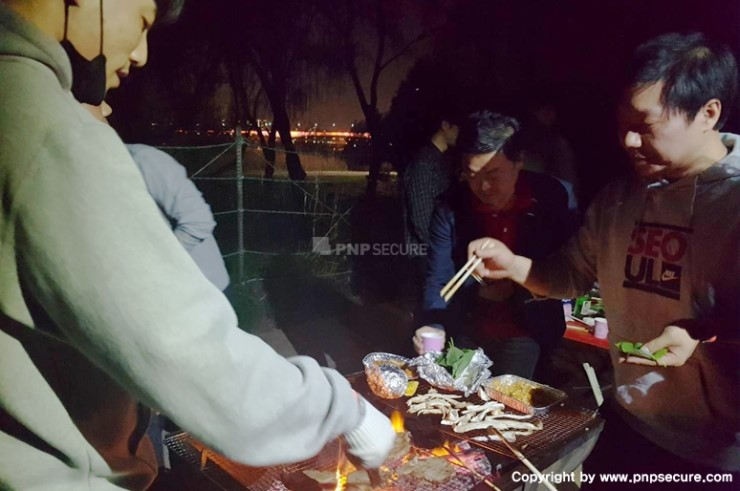 야간 'BBQ 파티'를 즐기는 '기술지원부 / 프로젝트팀' 맴버들... ↓