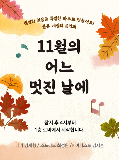 11월에 어울리는 멋진 음악을 선보였습니다.