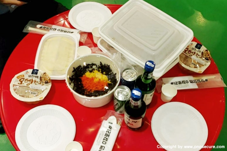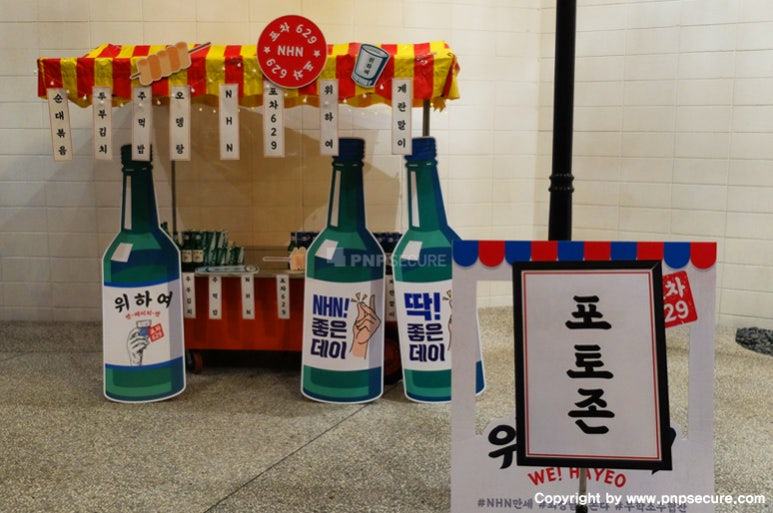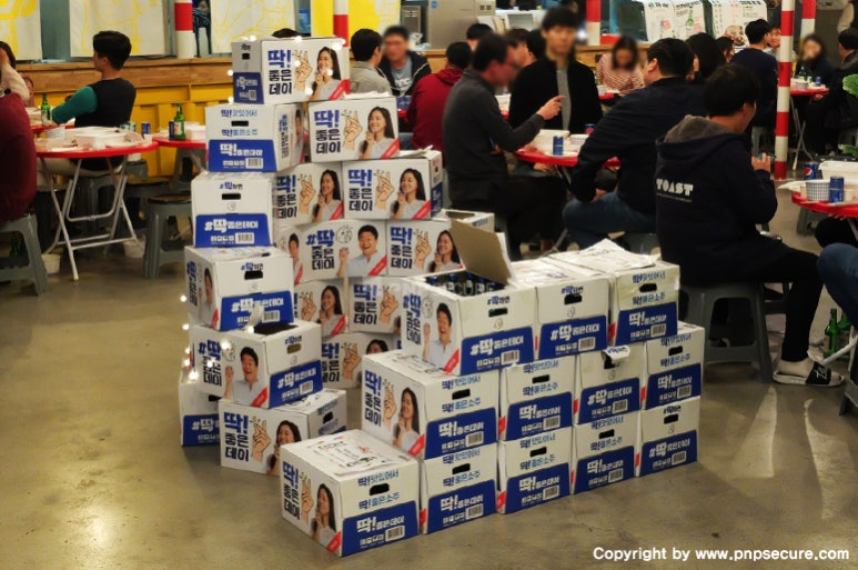 (소주는 오늘 행사를 위해 전부 특별하게 제작된 상표가 부착되어 있었으며,