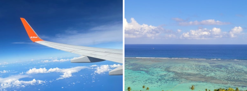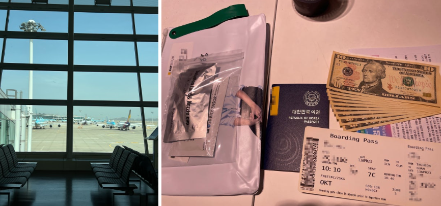 빠르게 수속을 마친 뒤, 비행기에 탑승! 약 4시간의 비행 후 드디어 괌에 도착했습니다.