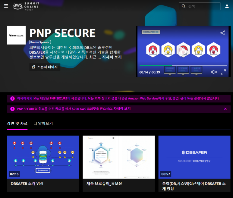 피앤피시큐어가 올해 7번째 열리는 AWS Summit Online Korea 온라인 컨퍼런스에 참가했던