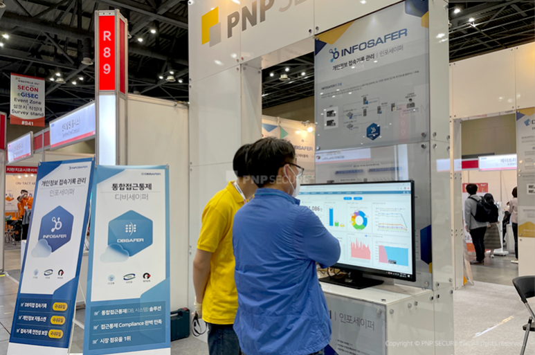 많은 참관객분들께서 피앤피시큐어의 여러 솔루션 중 디비세이퍼(DBSAFER)의 코어엔진이 탑제된 개인정보 접속기록 관리 솔루션 '인포세이퍼(INFOSAFER)' 제품에 큰 관심을 보여 주셨습니다!