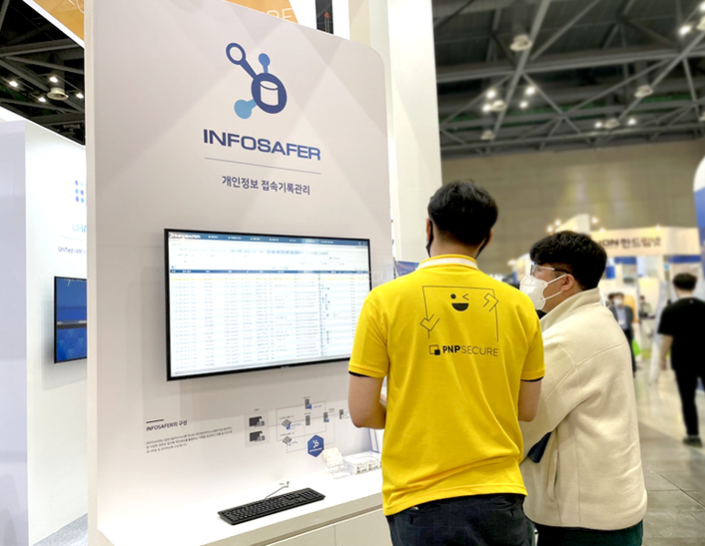 개인정보 접속기록 관리 솔루션 ‘INFOSAFER’는 데이터베이스 내 개인정보의 위치를 자동으로 검출하고, 해당 개인정보에 접근하는 모든 경로의 활동을 기록 및 모니터링하며, 이상징후를 분석하여 알림 기능을 제공합니다. 관람객분들께서 상담과 자료요청을 하는 등 ‘INFOSAFER’에 대한 많은 관심을 주셨습니다.