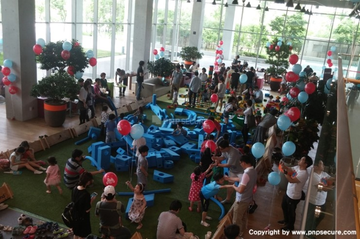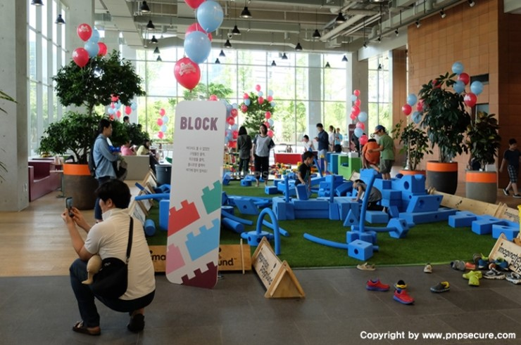 1층에서는 아이들이 커다란 블록을 조립해보는 'BLOCK'과 부모님 되신 임직원의 피로를 풀어드리기 위한