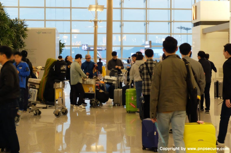 면세점과 개인 일정을 마친 후 비행기에 탑승하는 피앤피시큐어 인원들.... ↓