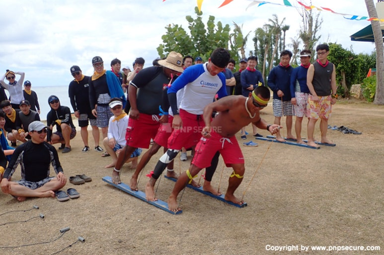 널판지 걷기 , 카약 릴레이, 튜브 릴레이, 맥주 마시기 등 팀워크과 재치를 요구하는 종목이었습니다.