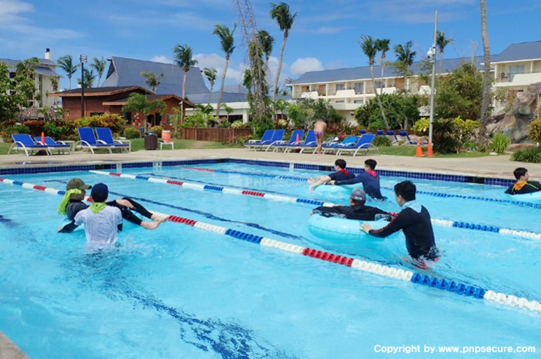 '피앤피올림픽'이 끝나고 잠시 리조트에서 '물놀이'를 즐기는 인원들... ↓