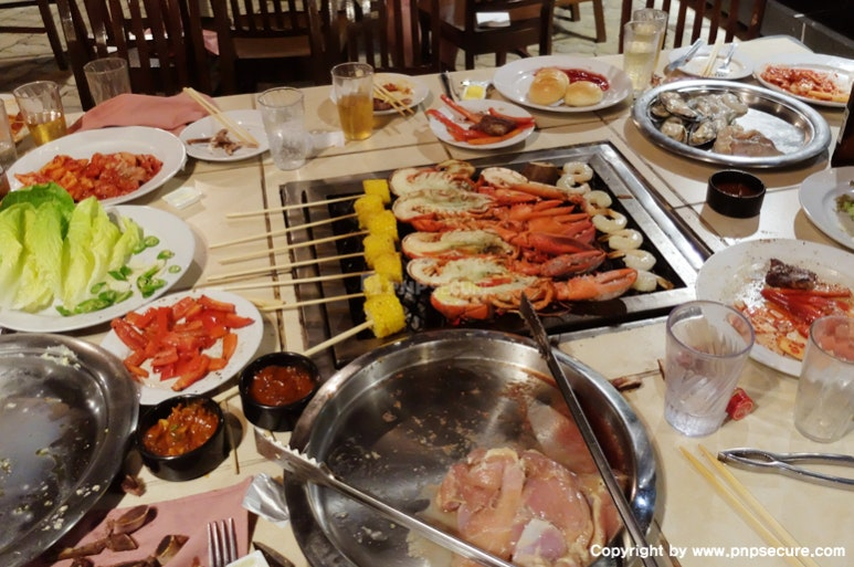 바비큐에는 한국식 양념 불고기부터 '랍스터'까지 다양한 고급 육류와 해산물이 제공됐으며,