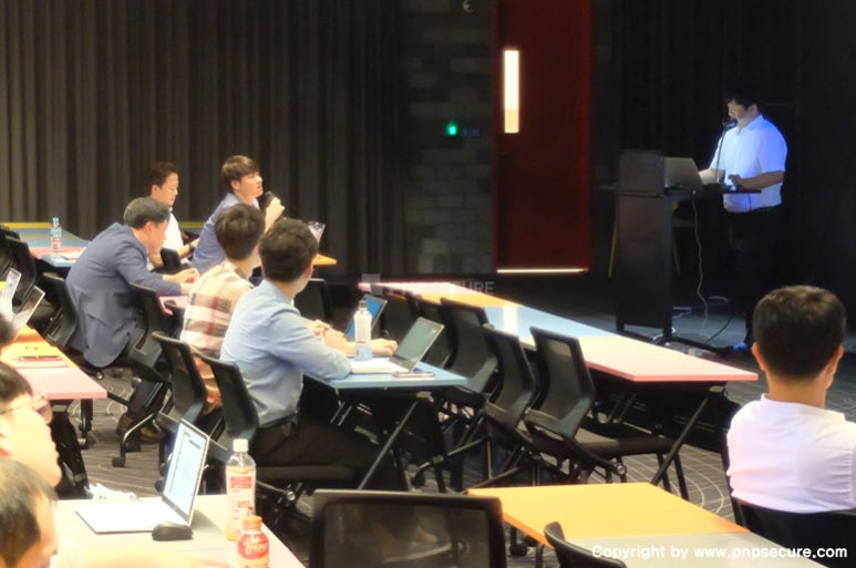 발표와 기술 시연 그리고 개발을 담당한 '정보보안*****"의 "박**" 부장도 강의에 참여하여