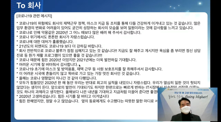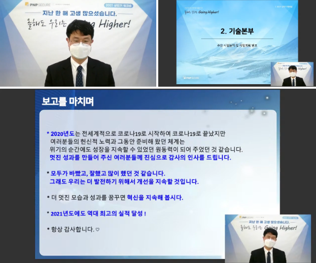 유튜브 라이브로 실시간으로 피앤피시큐어의 지난해 사업 성과와 새로운 사업 계획, 열정 넘치는 도전과 희망을 생중계하였는데요,