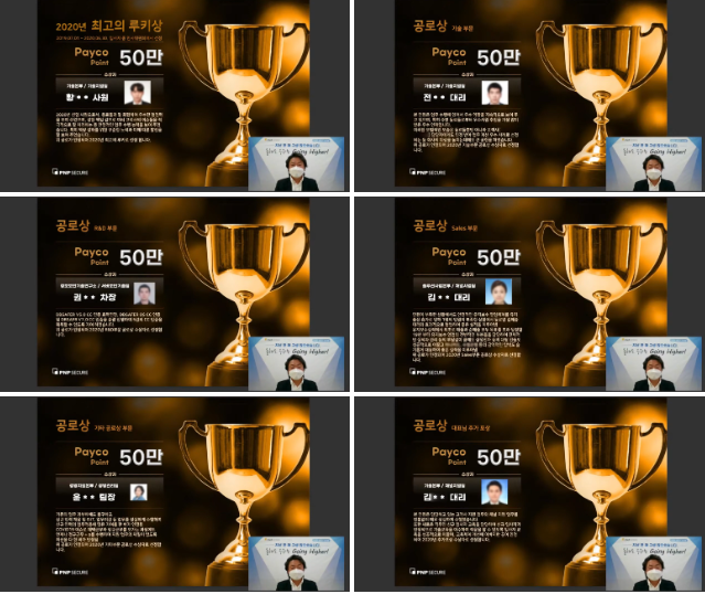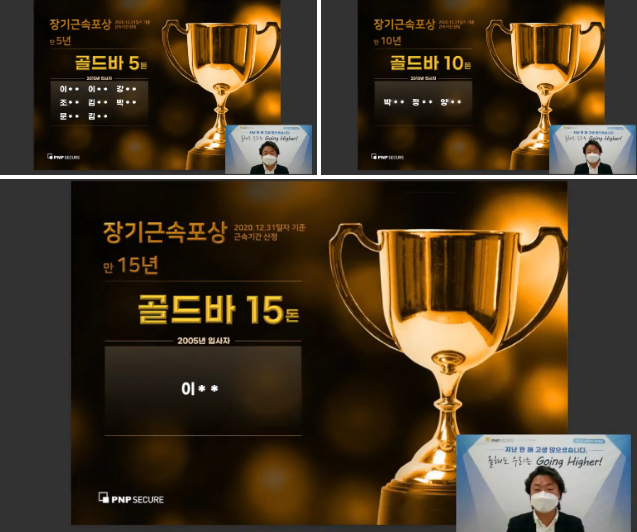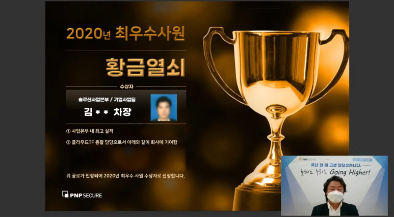 지난 2020년 피앤피시큐어의 사업 성과에 큰 공로를 세운 분들께 포상하는 시간을 가졌습니다.