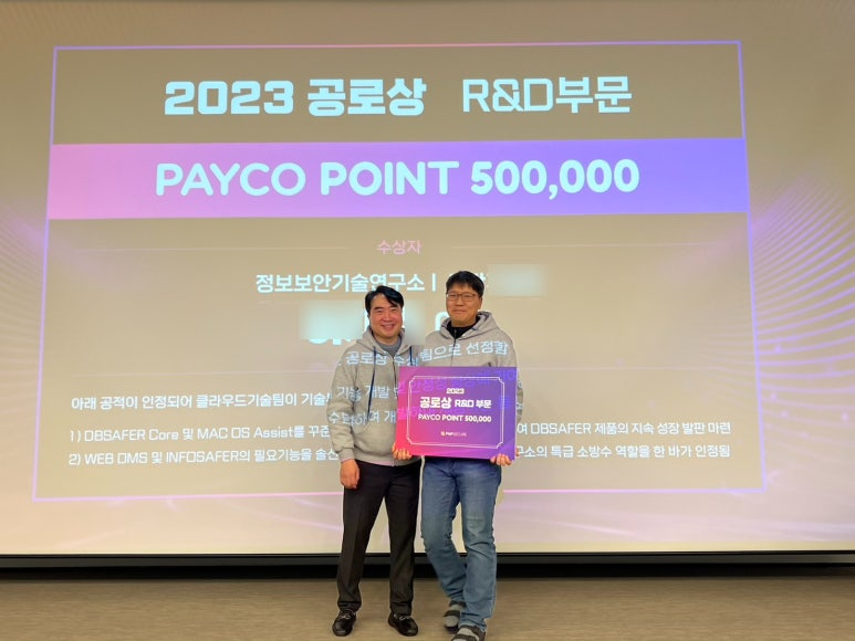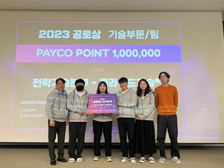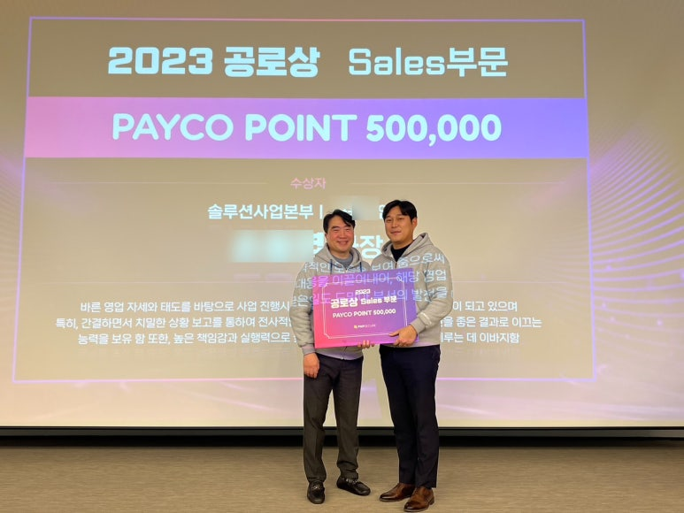 공로상은 기술부문, R&D부문, Sales 부문 총 3개의 부문에서 한 해 동안 성과 달성에 가장 크게 기여한 직원에게 각 50만 페이코 포인트를 지급하는데요.