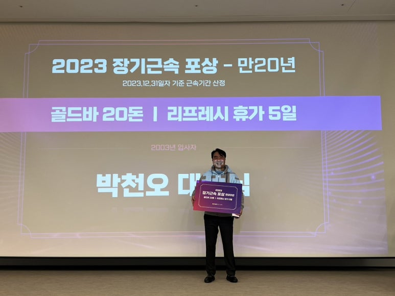창립 최초 20년 근속자 포상의 영광은 박천오 대표이사님께 돌아갔습니다 👏🎉