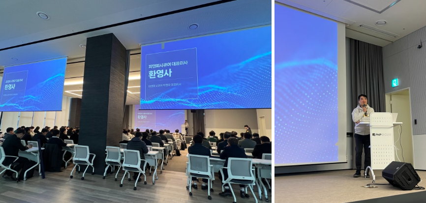 피앤피시큐어 박천오 대표이사님의 환영사로 본격적인 행사가 시작되었습니다.