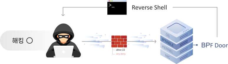 BPFDoor 는 네트워크 방화벽의 허용 Rule을 공략해 공격대상 서버에 접근합니다.