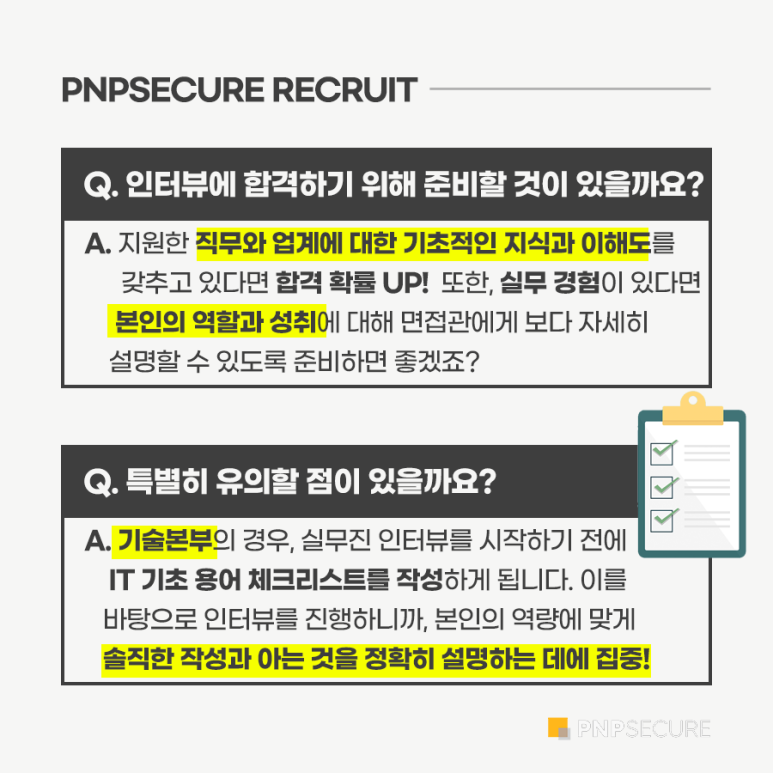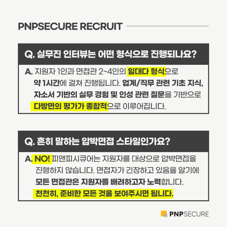 피앤피시큐어 면접이 더는 어렵게 느껴지지 않도록 모두 설명해드립니다 : )