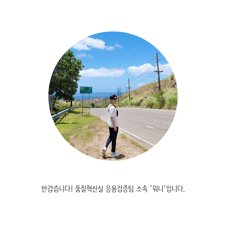 안녕하세요, 품질혁신실 응용검증팀의 '워니'입니다.
