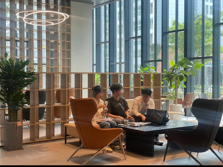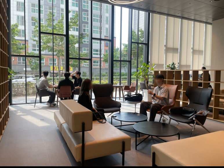 본격적인 기업탐방 이전, 무더운 날씨에 마곡 사옥까지 방문해 주신 교육생분들을 위해 1층 사내 카페에서 시원한 음료를 마시면서 잠시 땀을 식힐 수 있는 브레이크 타임을 가졌습니다.