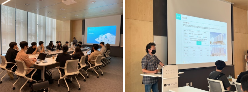 피앤피시큐어 정락찬 경영지원본부장님께서 직접 피앤피시큐어의 사업 영역을 비롯해 정보 보안 솔루션 개발 업체의 다양한 직무와 근무 환경, 사내 문화 등을 소개해주셨습니다.