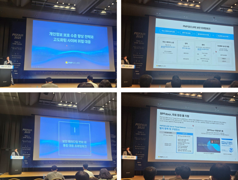 피앤피시큐어의 보안성과 편의성을 모두 고려한 ‘개인정보 접속기록 관리 솔루션의 고도화 전략’과 ‘BPFDoor 등 서버 위협 탐지 도구’를 주제로 진행된 강연을 비롯해 제품 시연 및 문의를 위해