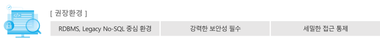 기업·기관은 환경과 상황에 적합한 기술을 선택적으로 적용해 최적의 보안 체계 구축이 가능하며, 신규 보안 대상 DBMS가 추가되더라도 DBMS의 종류와 관계없이 신속하고 유연한 대응이 가능합니다.