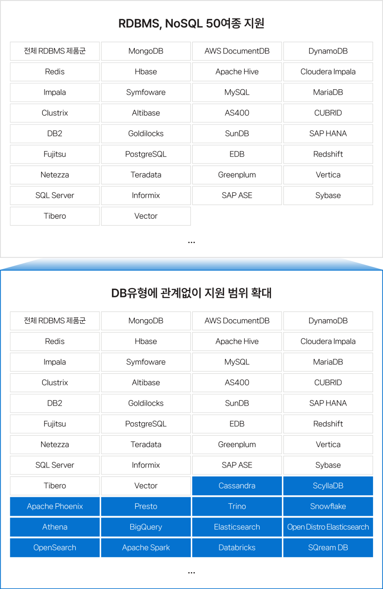 • 신속한 기술 지원 : 새로운 데이터베이스에 대한 기술 지원을 빠르게 제공하여 최신 데이터베이스 환경에서도 안전한 보안을 유지할 수 있습니다.