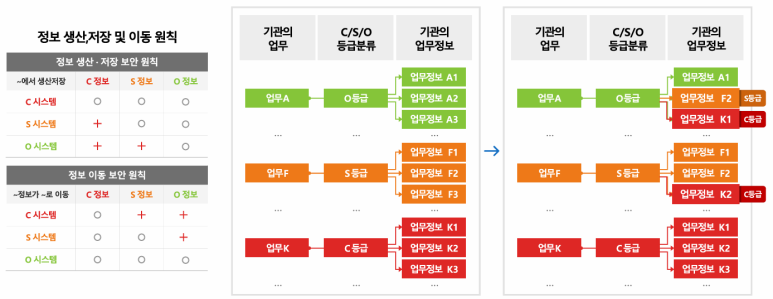 데이터를 중요도에 따라 3등급으로 분리하고, 하위 등급의 데이터에 한해 업무망과 인터넷망 간 이동을 허용해 보안성과 데이터 활용성을 동시에 보장합니다.