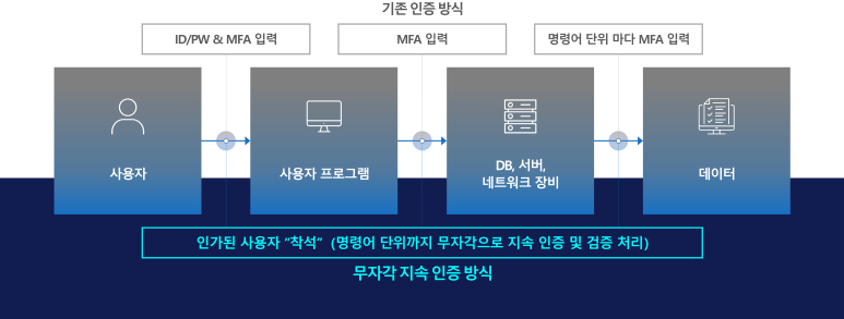 접속 이후 명령어 수행 시점에도 사용자를 무자각 지속 인증함으로써
