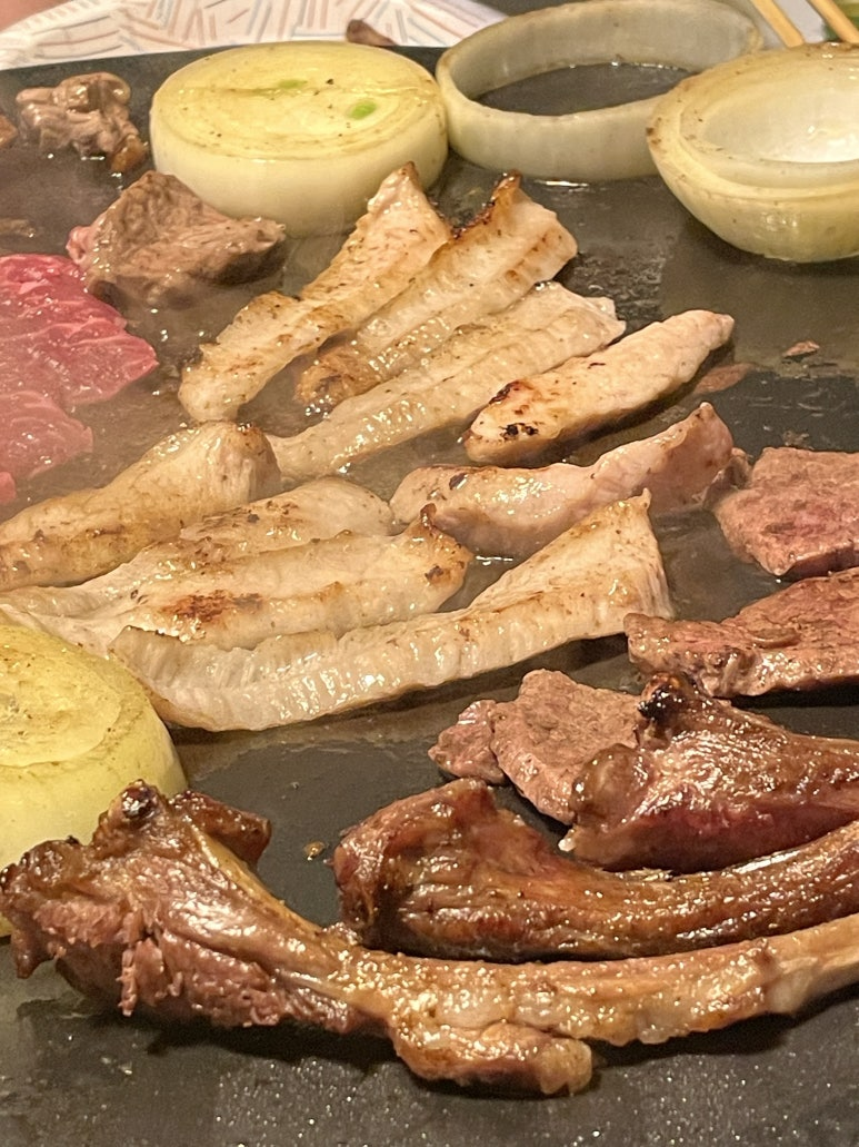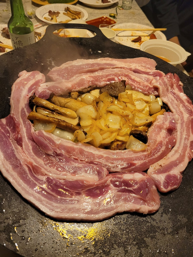 저녁식사로는 장에서 구매한 재료로 풍성한 바비큐 파티를 열었습니다.