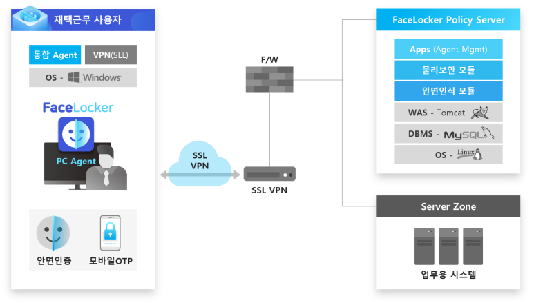 실시간 안면인증 솔루션인 페이스락커는 인공지능(AI) 기술을 바탕으로 사용자 안면인식을 실시간으로 분석해 인증하는 기능을 제공, 비대면·재택 근무 시 반드시 필요한 사용자 인증 환경을 조성한다.