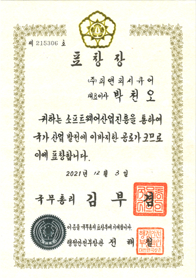 NEWS [수상] SW산업발전유공 국무총리 표창 PNPSECURE 16 12월 2021 • 1 min read 통합접근제어 솔루션 전문 기업 피앤피시큐어 박천오 대표님께서 지난 3일 개최된 ‘제22회 SW산업인의 날’ 기념식에서 SW산업 발전에 기여한 공로를 인정받아, 소프트웨어산업 발전 유공 ‘국무총리 표창’을 수상했습니다!SW산업발전유공 국무총리 표창🔹 수상 내용: 2021 SW산업발전유공 국무총리 표창🔹 수상일: 2021년 12월 3일🔹 수상자: ㈜피앤피시큐어 대표이사 박천오