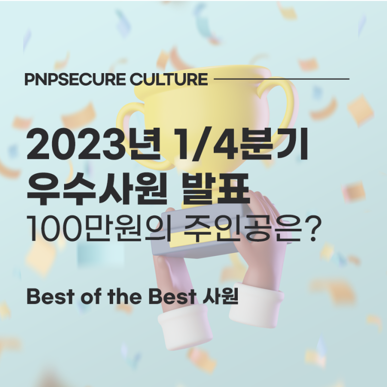 [우수사원포상] 피앤피시큐어 2023년 1/4분기 Best of the Best 사원의 주인공은? [출처] [우수사원포상] 피앤피시큐어 2023년 1/4분기 Best of the Best 사원의 주인공은?|작성자 PNPSECURE
