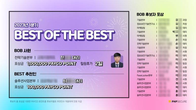 2023년 1/4분기 피앤피시큐어 Best of the Best 사원